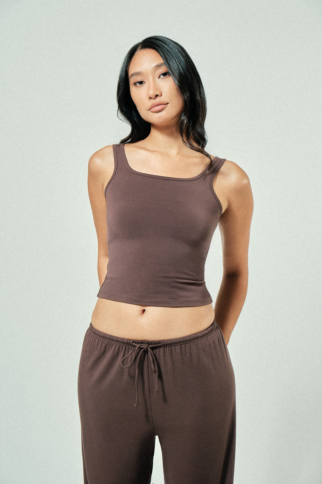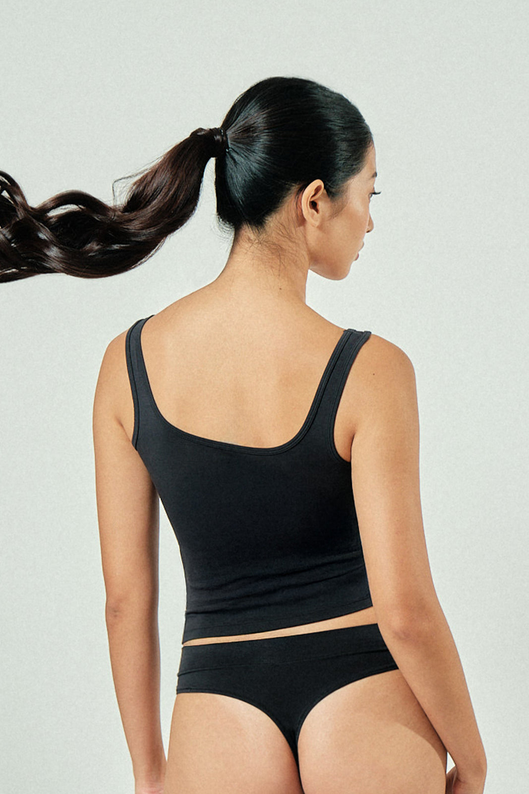 Sculpted staple with a scoop neckline, fitted silhouette, and waist-grazing length. Soft and versatile. Layers seamlessly or stands on its own for easy everyday wear.