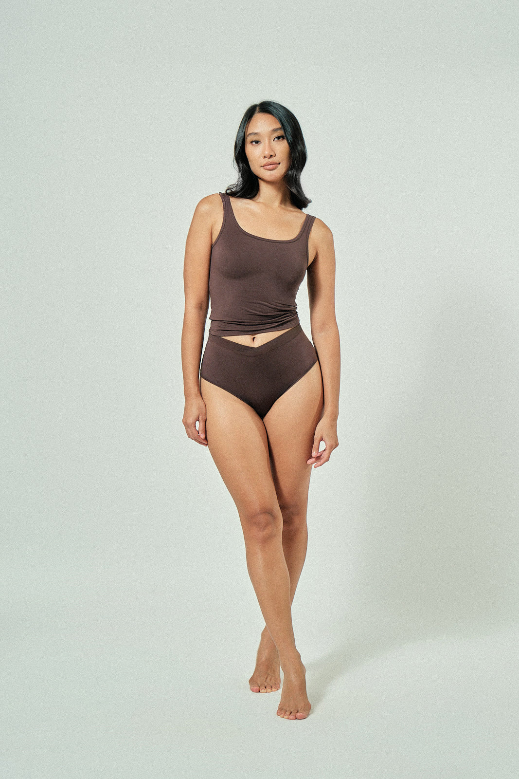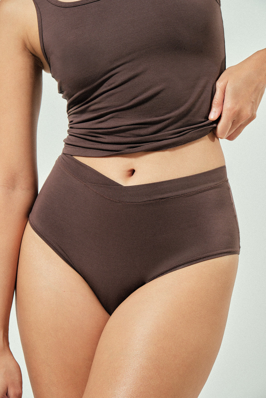 Smoothing classic with a high-rise waist, full coverage, and buttery modal softness. Breathable and always holds its shape with a 100% cotton gusset. Made for everyday wear, pregnancy, postpartum, or anytime you want a supportive, secure fit.